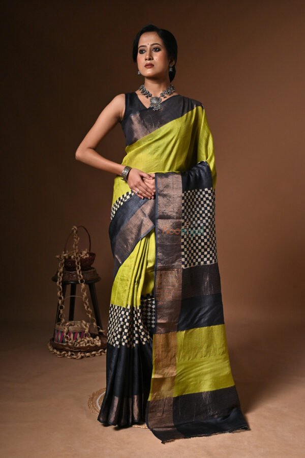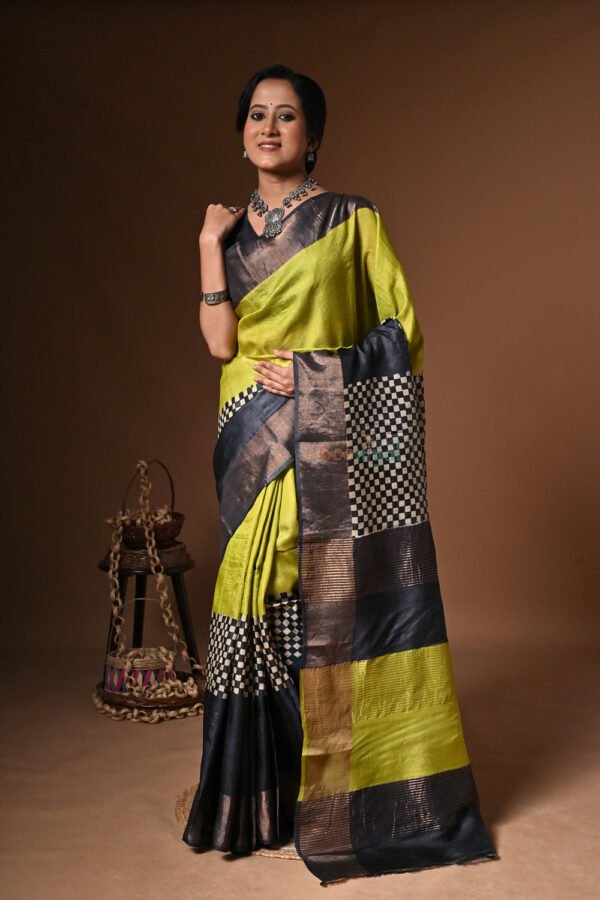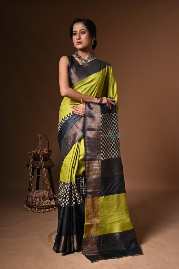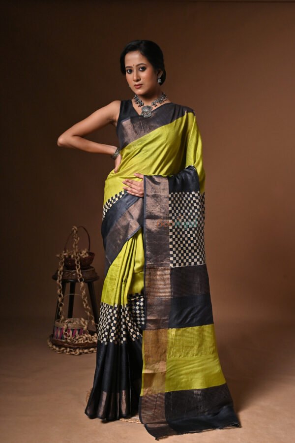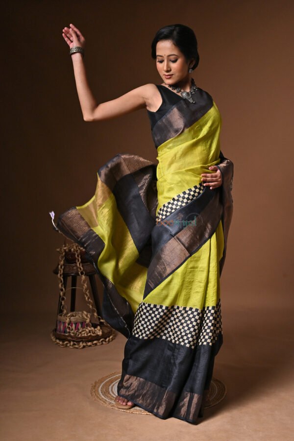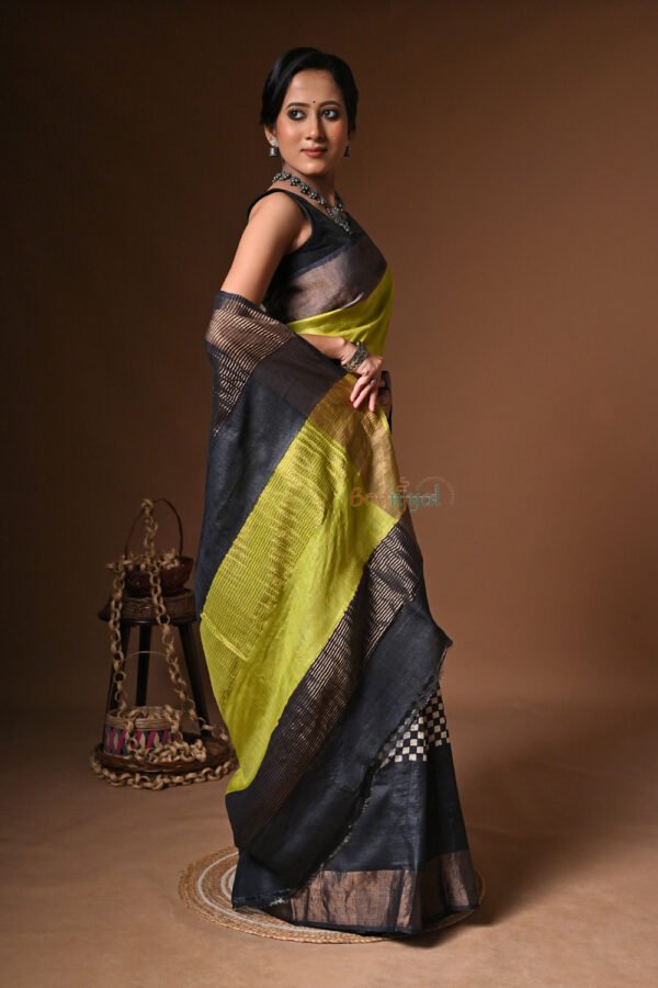 - Fabric: Authentic Bishnupuri Silk – renowned for its smooth texture and natural sheen.