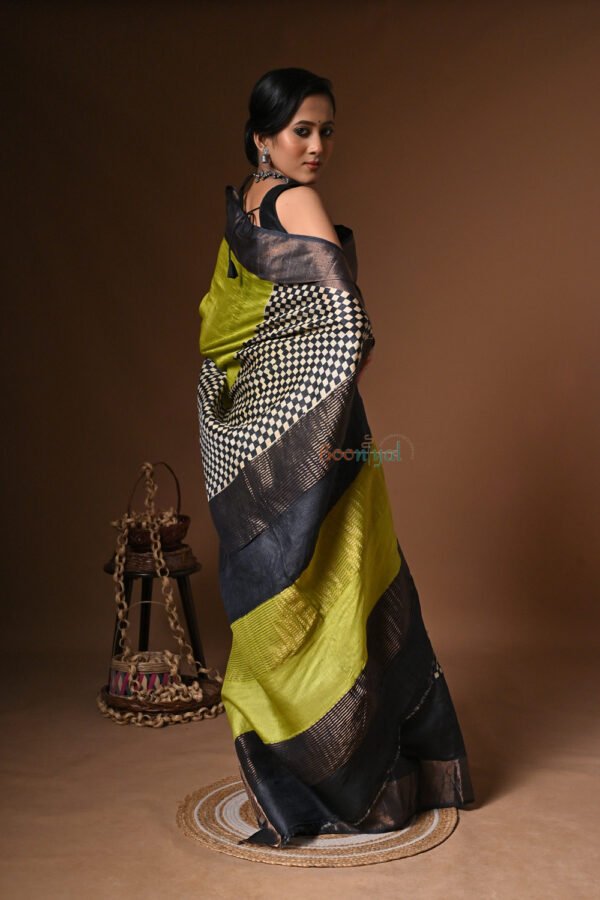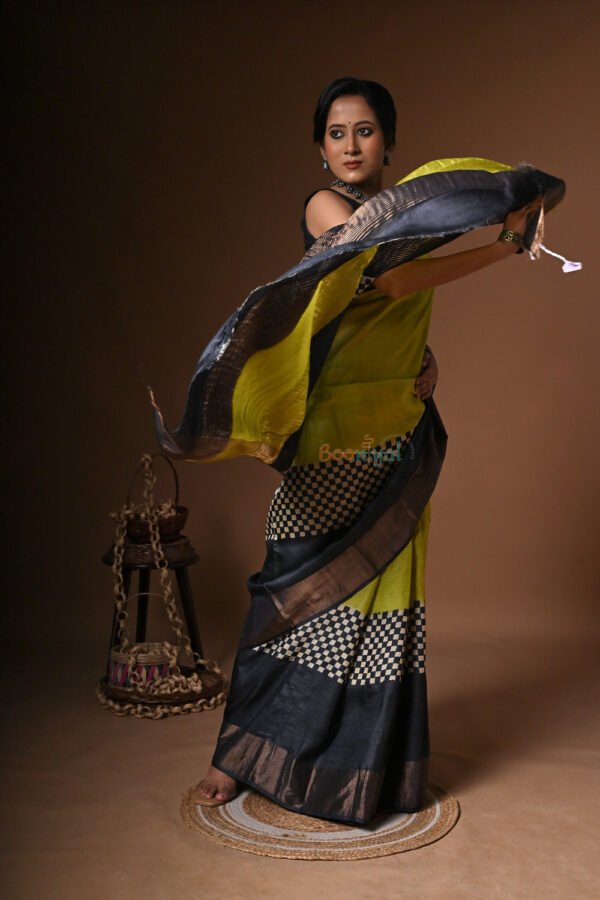 Discover timeless elegance with Booniyal Boutique’s Hand Block Print Bishnupuri Silk Saree, a masterpiece of heritage craftsmanship and modern luxury.