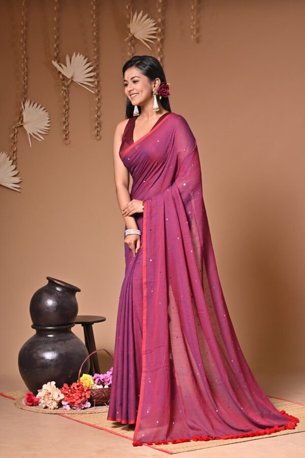 Soft Pure Mul Cotton Saree with Sequin Work