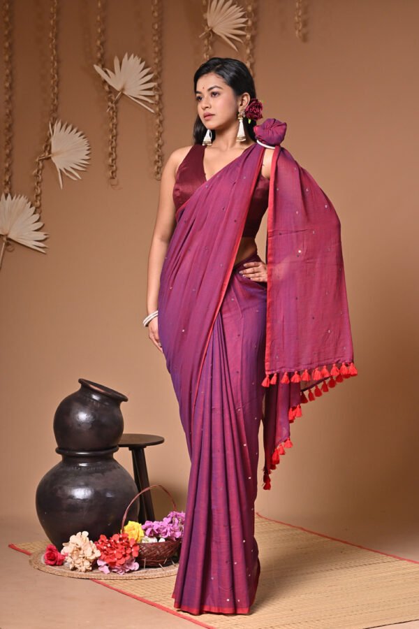 Wrap yourself in effortless elegance with our Soft Pure Mul Cotton Saree, delicately adorned with shimmering sequin work. Crafted from premium mul cotton, this saree offers unmatched comfort and breathability, making it ideal for long hours of wear. The sequins add a graceful sparkle without overpowering the natural charm of the fabric, striking the perfect balance between simplicity and sophistication.